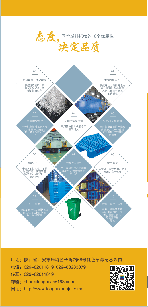 陜西同華機(jī)電有限公司主營西安塑料托盤,西安垃圾桶,西安塑料模具加工,西安塑料制品加工 等產(chǎn)品,歡迎前來咨詢!