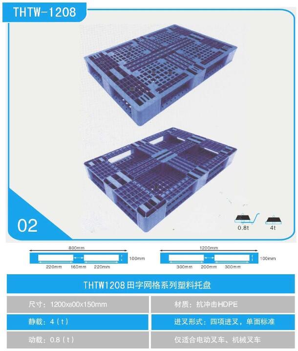 簡介—— 塑料托盤的特征1、撓曲力:即時的撓曲力可以阻止托盤上貨物在被叉車托起時散落;2、彎曲:塑料托盤在被放到貨架上之后,其彎曲
